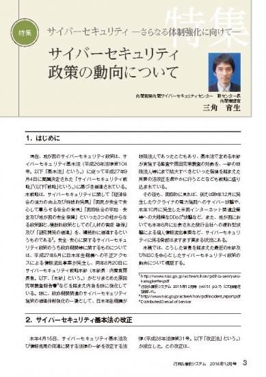 2016年12月号特集「サイバーセキュリティ政策の動向」の記事です。