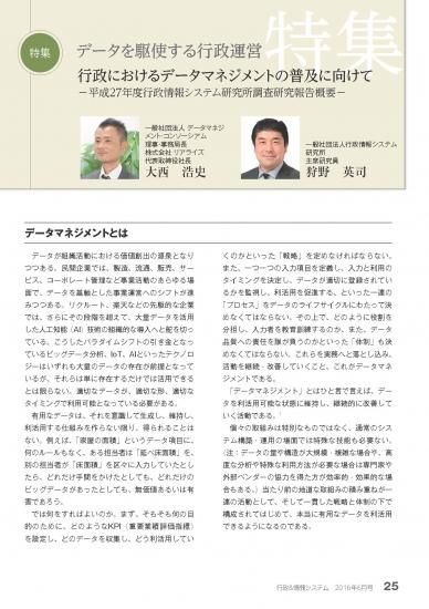 2016年6月号特集「行政におけるデータマネジメントの普及に向けて−平成27年度行政情報システム研究所調査研究報告概要−」