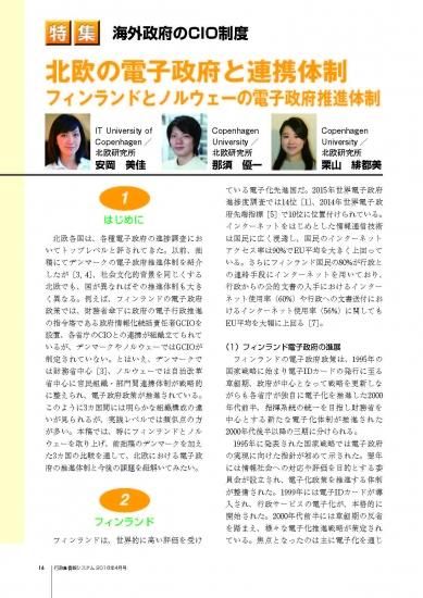 2016年4月号特集「北欧の電子政府と連携体制 −フィンランドとノルウェーの電子政府推進体制 −」の記事です。