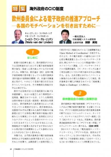 2016年4月号特集 「欧州委員会による電子政府の推進アプローチ ─各国のモチベーションを引き出すために─ 」
