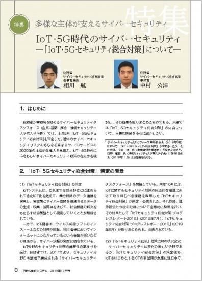 特集「IoT・5G時代のサイバーセキュリティ−「IoT・5Gセキュリティ総合対策」について−」