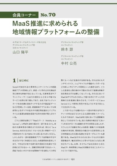 会員コーナー No.70 MaaS推進に求められる地域情報プラットフォームの整備