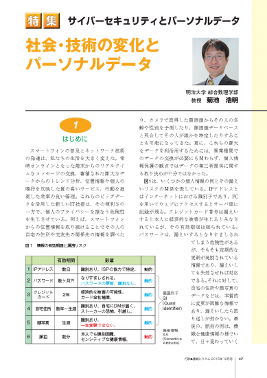 特集「サイバーセキュリティとパーソナルデータ」(※)中の掲載記事